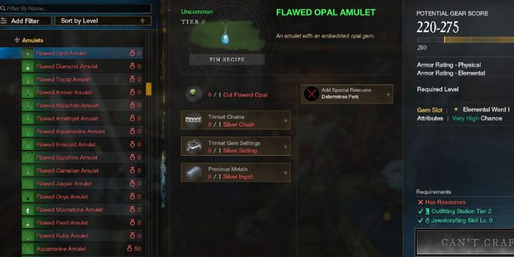 또한 장신구 부품을 제작하려면 은과 금 주괴를 제련할 수 있어야 합니다. 후크, 밴드 및 설정과 같은 항목입니다. 상위 계층의 장신구에는 은과 금의 구성 요소가 모두 필요하지만 하위 2단계 항목에는 은만 필요합니다 .