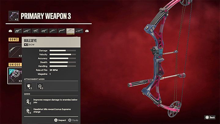 Far Cry 6 에서는 일반 활 (일부 상인에게서 구매하거나 무작위 전리품으로 발견)과 고유 무기를 포함하여 여러 가지 활을 사용할 수 있습니다 .