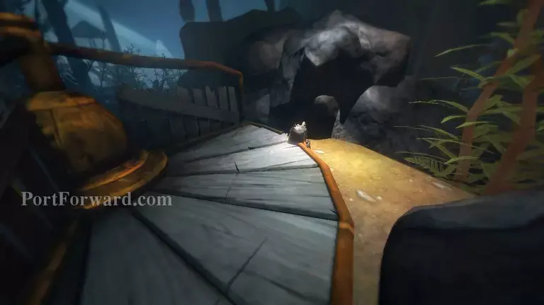올빼미를 타고 오른쪽 길을 따라가다가 출구가 보일 때까지 계속 가세요. 문을 잠그고 있는 나무 조각을 제거합니다. 터널을 나와 오른쪽으로 회전하여 놀이터로 돌아갑니다.