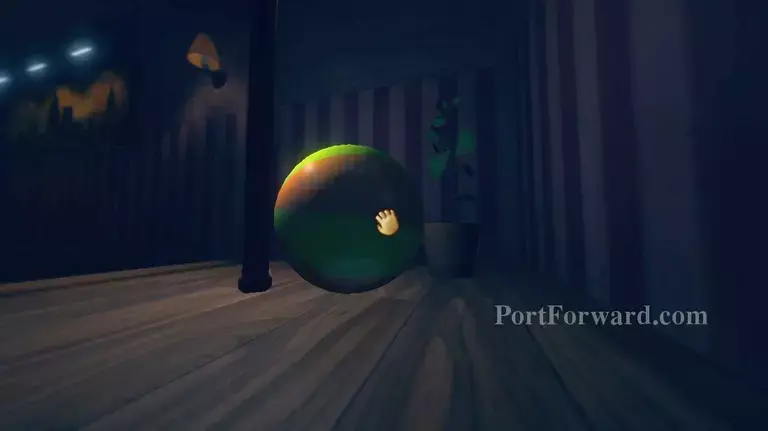 아기 침대에 다시 눕힌 후 몸을 돌려 뒤에 있는 비치볼을 가리킵니다. RB를 길게 누른 다음 터널에서 공을 제거하고 통과하십시오.