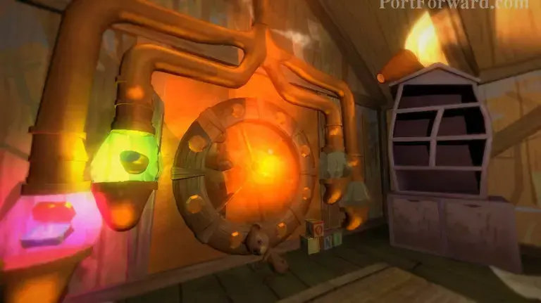 이상한 지역에 있는 자신을 발견하게 될 것입니다. 나무 판자를 통해 진행하면 반대편에 놀이방이 기다리고 있습니다.