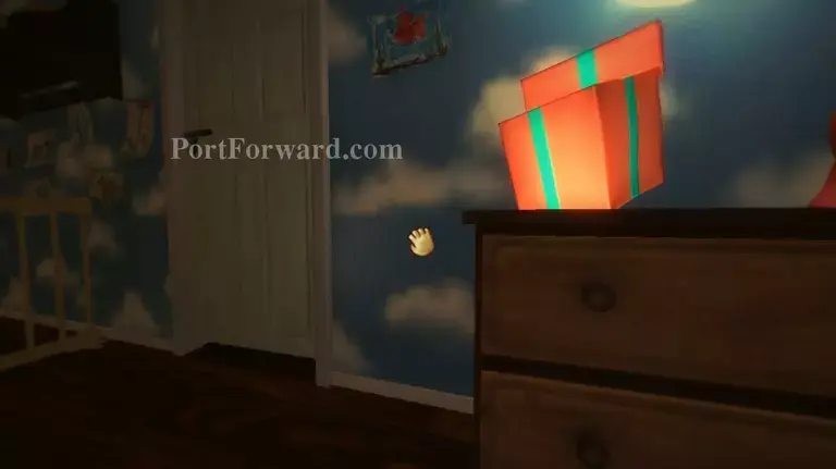 서랍 위로 올라가 선물 상자를 들어 올립니다. 상자가 바닥에 떨어질 때까지 계속 드래그하면 비어 있음을 알 수 있습니다.