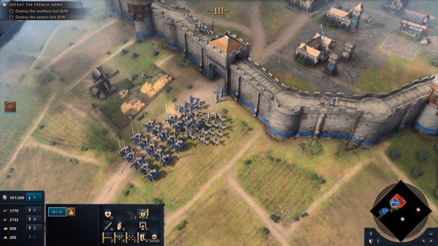 시리즈를 처음 접하는 독자를 위해 – 그리고 마지막으로 번호가 매겨진 항목 이후 16년이라는 점을 감안할 때 꽤 많은 독자가 있을 것입니다 – Age of Empires는 정착지를 건설하고 방어하는 역사적 실시간 전략 시리즈입니다. 표준 게임에서는 자원을 추출하여 구조물과 군인에 투자합니다. 그런 다음 이를 사용하여 상대방이 짓고 있는 건물을 무너뜨릴 수 있습니다. 승리를 위한 다른 방법도 있습니다. 일정 시간 동안 지도의 모든 성지를 제어하거나 불가사의를 건설하고 방어하여 승리할 수 있습니다.