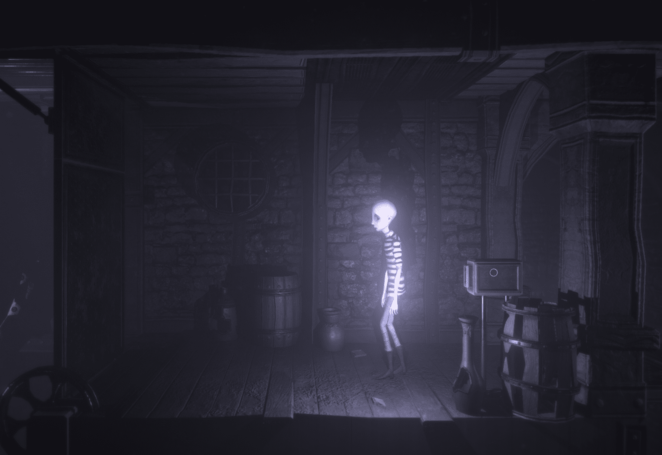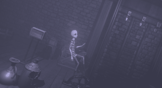 레버를 왼쪽으로 당기면 열차가 정지합니다. 기차를 타고 왼쪽으로 걸어가다가 핸들을 찾을 때까지 왼쪽으로 가십시오. 이 방에서 핸들을 돌리면 오른쪽에 새로운 위치가 나타납니다. 휠을 왼쪽으로 한 번 돌리면 아래와 같은 방이 나타나며 오른쪽으로 이동합니다.