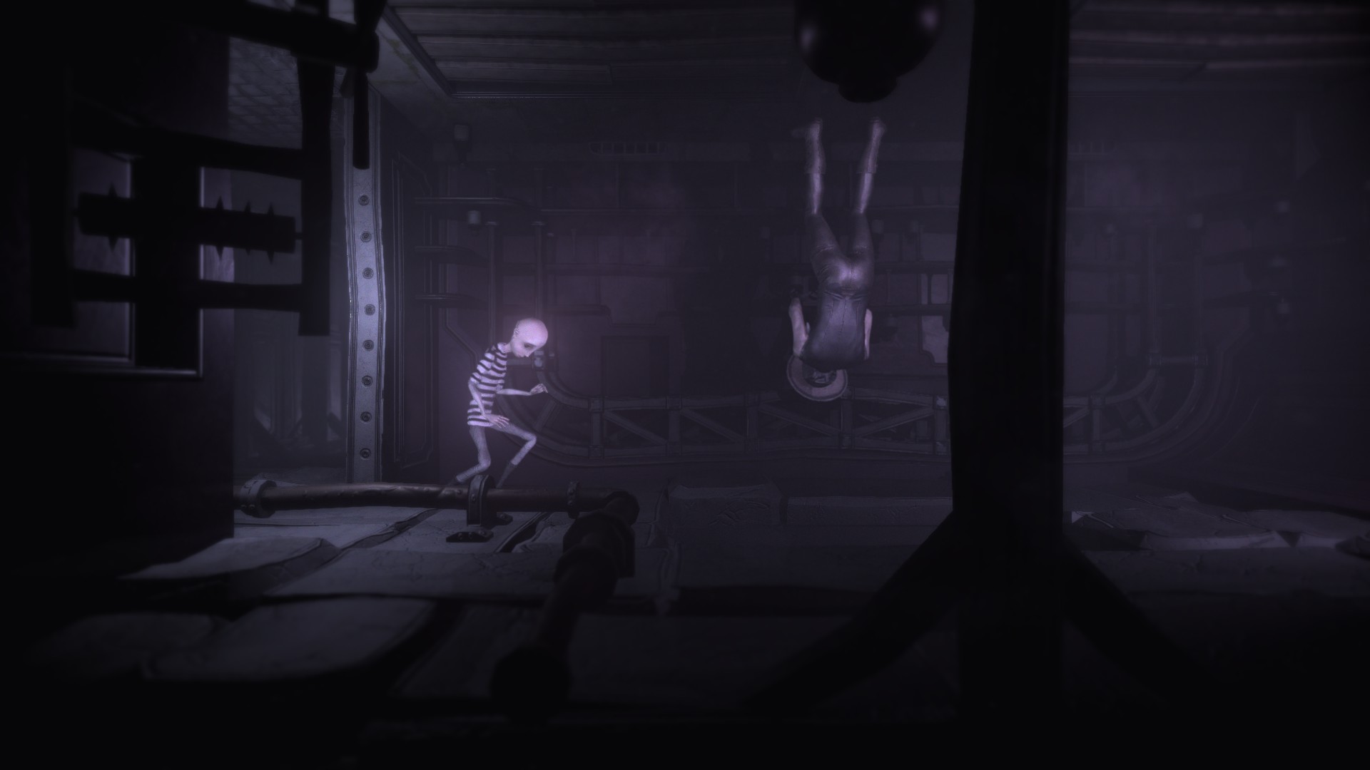 오른쪽에서는 이상한 키 를 사용해야 하지만 아직 사용할 수 없습니다. 핸들과 레버가 있는 방을 찾을 때까지 왼쪽으로 계속 가십시오. 레버를 당기고 바퀴를 왼쪽으로 두 번 돌립니다. 구멍을 통해 내려가면 휠체어를 탄 적이 있습니다. 그것이 완전히 오른쪽으로 갈 때까지 기다렸다가 벽과 상호 작용하고 거꾸로 서서 왼쪽으로 갈 때까지 기다립니다. 큰 기어에 이상한 키를 사용하고 다음과 같이 이상한 키에 끝이 두 개만 있을 때까지 레버를 사용하여 이동합니다.