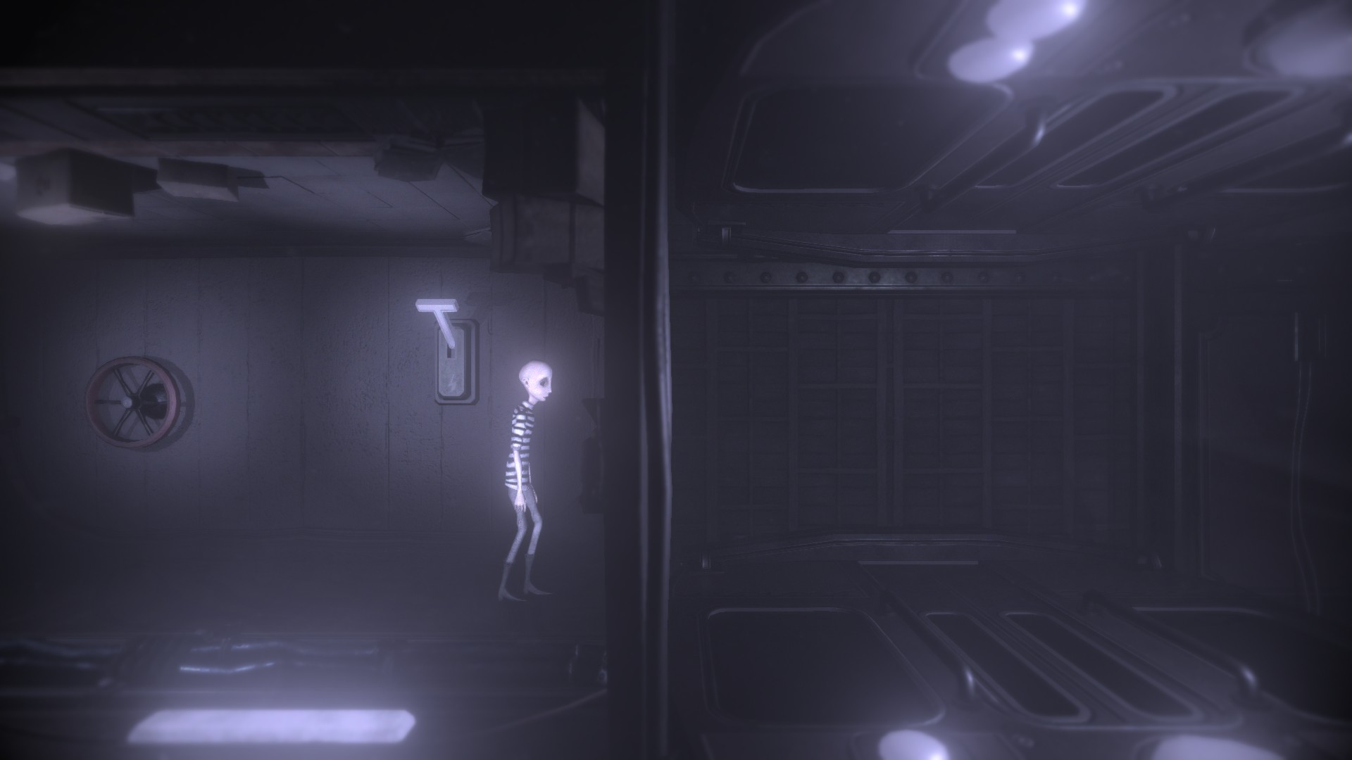 문이 없는 것처럼 보이는 방에서 자신을 발견합니다. 게임의 꿈의 물리 논리를 트리거하려면 오른쪽 벽을 껴안고 'Wall Walk' 키를 눌러야 합니다. 벽 근처에 서 있을 때마다 방향이 바뀌고 그 벽이 바닥인 것처럼 계속 걸을 수 있습니다.
