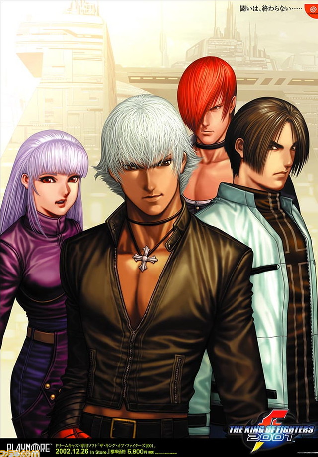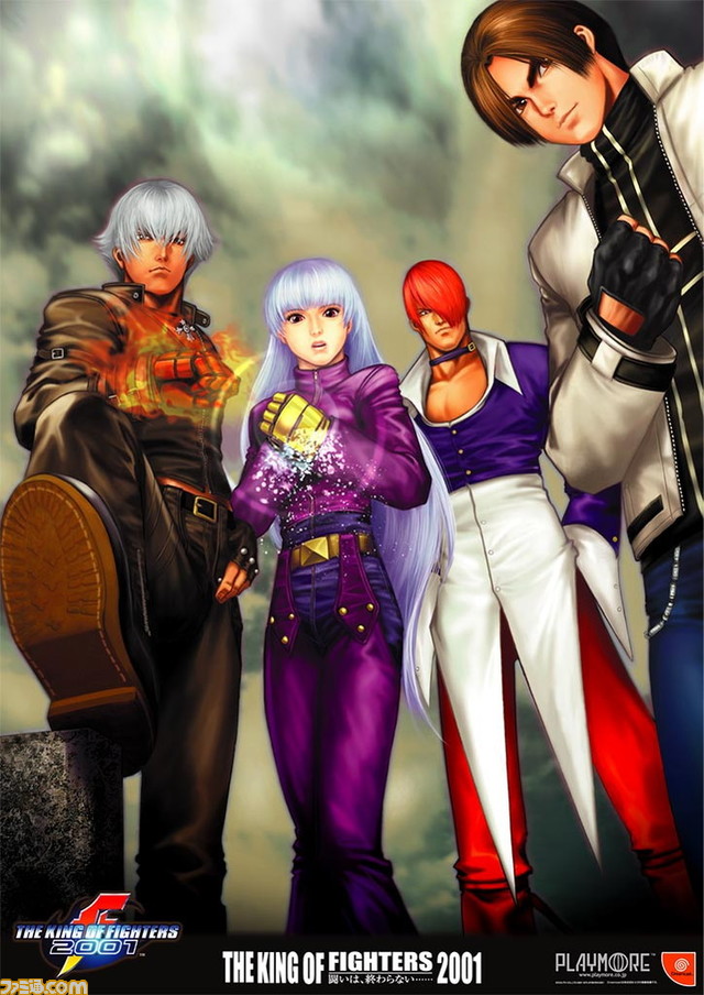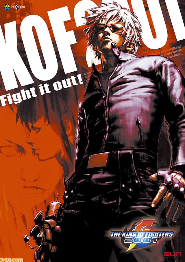 『KOF 2001』은 네스츠편 최종장이 되는 타이틀.메인 비주얼을 그리는 것은 전작에 이어 히로아키 씨.씨는 지금까지도 『무력 ~BURIKI ONE~』(하이퍼 네오지오 64)의 캐릭터 디자인 등 수많은 싸우는 남자를 그려온 아트 스탭이다.비스듬히 꾸며 떠다니는 K'의 모습은 최종장에 어울리며 과거 최대급에 시원하게 그려져 있다.대전 격투 게임의 비주얼이라는 틀을 넘어 패션 아이템의 포스터라고도 생각할 정도다.