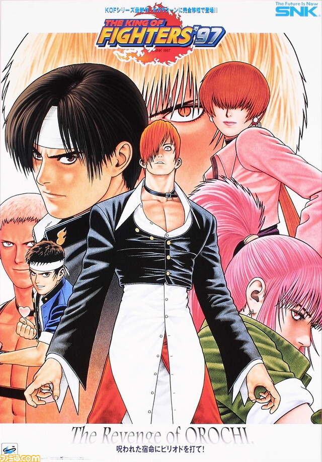 'KOF '97'은 배경에 있는 이야기, 오로치편이 완결되는 타이틀.이 무렵은 시리즈작으로서의 지위가 반석이 되는 것과 동시에, 매회, 게임의 룰이나 표현으로 다양한 시도에 도전하고 있던 시기이기도 했다.룰면에서는 "어드밴스트"와 "엑스트라"라는 2 종류의 조작 모드가 선택 가능하게 된 것을 들 수 있다.또 하나의 주목점은, 대전중의 BGM.일부를 제외하고 음악이 아니라 스테이지의 환경음만이 흐른다는 대담한 수법으로 대전의 리얼함을 연출해 나갔다.