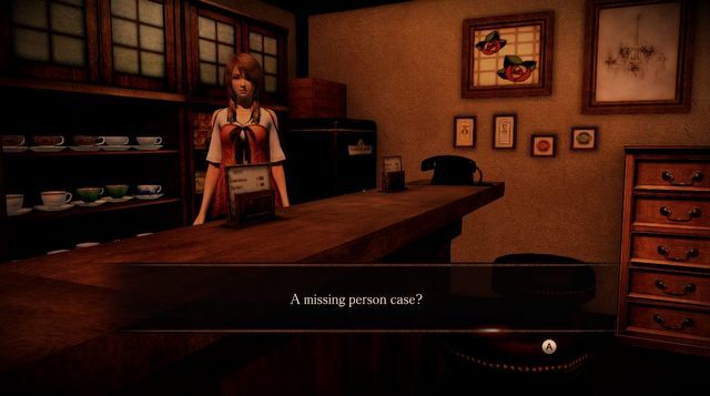 예를 들어, Second Drop(경고 스포일러 경고)에서 오프닝 텍스트는 다음과 같습니다. "...Hisoka가 어딘가에 갔다가 돌아오지 않았습니다... [유리]가 골동품 가게에서 기다리고 있을 때 Fuyuhi Himino라는 소녀가 나타납니다. , 히소카에게 실종자를 찾는 일을 도왔다고 주장한다." 다음 컷신은 설명된 대부분을 재생합니다. 플레이어인 유리는 골동품 가게에 앉고, 후유히는 히소카를 부르며 사라진 친구에 대해 이야기합니다. 유리는 히소카가 돌아오지 않았다고 설명한다.