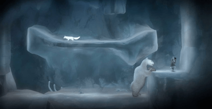 올려진 플랫폼 중앙에 있는 얼음이 떨어집니다(Fox와 함께 있을 수 있음). 다시 Fox를 통해 북극곰의 주의를 끈 다음 상단 플랫폼으로 돌아갑니다. 틈을 통해 떨어지기 전에 점프해야 합니다. 누나는 다시 내려와 볼라를 사용해야 합니다. 플랫폼의 절반이 넘어져 Fox는 이전처럼 다시 일어설 수 없습니다.