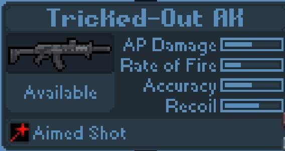무기 설명으로 이동하기 전에 때때로 피해를 나타내는 무기 통계가 대신 AP 피해로 나열됩니다. 이는 갑옷 관통을 의미하며 갑옷을 관통하지는 않지만 일반적으로 AP가 아닌 무기보다 갑옷에 훨씬 더 많은 피해를 줍니다. 한동안 갑옷을 입은 적을 볼 수 없지만 작동 방식은 갑옷이 손상되기 전에 먼저 손상되어야 한다는 것입니다. 조준 사격은 AP 여부에 관계없이 막대한 피해를 줄 수 있는 능력이 있으며, 한 번의 공격으로 가장 중무장한 적(보스/엘리트 유닛 제외)을 제거할 수 있어 많은 캐릭터에게 이 능력이 중요합니다.