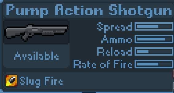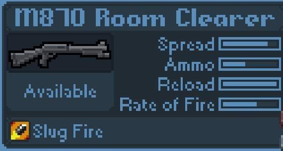 이것은 높은 데미지를 가진 훌륭한 산탄총입니다. 이 산탄총을 오랫동안 사용할 수 있습니다. 슬러그 파이어는 직선으로 발사되는 슬러그 라운드의 단일 샷입니다. 인질이 있는 방에 적합하며 갑옷에 비해 끔찍합니다.
