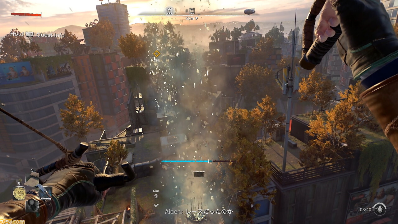 오픈 월드 게임이라고 하면 동서남북 다양한 장소를 자유롭게 오가는 것이 매력 중 하나이지만, 본작에서는 이러한 액션을 이용함으로써 플레이어의 행동 범위를 수직 방향으로도 넓힐 수 있게 되었다. 맵의 넓이는 전작비로 거의 2배가 되고 있지만, 건물 안이나 옥상 등 이동할 수 있는 장소가 퍼지고 있기 때문에, 체감으로서는 몇배의 볼륨을 숨기고 있다고 해도 과언이 아니다 것입니다.