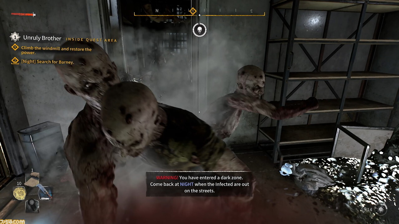 플레이어가 해내야 할 미션에는 건물 내를 진행하는 것도 존재한다. 그런 미션의 경우는 좀비가 거리에 쏟아내는 야간을 노리는 편이 위험도가 훨씬 떨어질 것이다.
