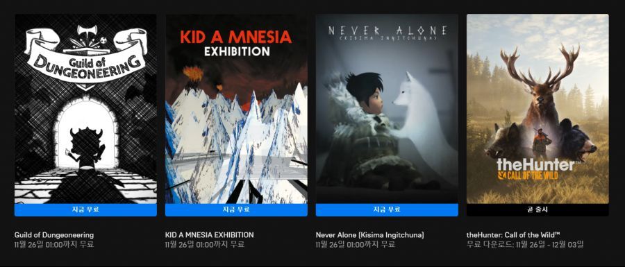 먼저, 사용자가 지금 청구할 수 있는 3개의 Epic Games Store 무료 게임이 있습니다. 지금부터 11월 25일 오전 10시(CT)까지 Epic Games Store 사용자는 Guild of Dungeoneering , KID A MNESIA EXHIBITION 및 Never Alone 을 신청할 수 있습니다 . 그 중 Never Alone 은 몇 년 전 최초 출시 당시 여러 상을 수상했기 때문에 틀림없이 헤드 라이너이지만 세 게임 모두 어쨌든 완전히 무료이므로 Epic Games Store 사용자는 모든 게임을 에 추가해야 합니다. 그들의 컬렉션.
