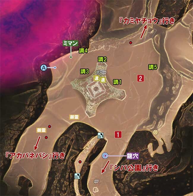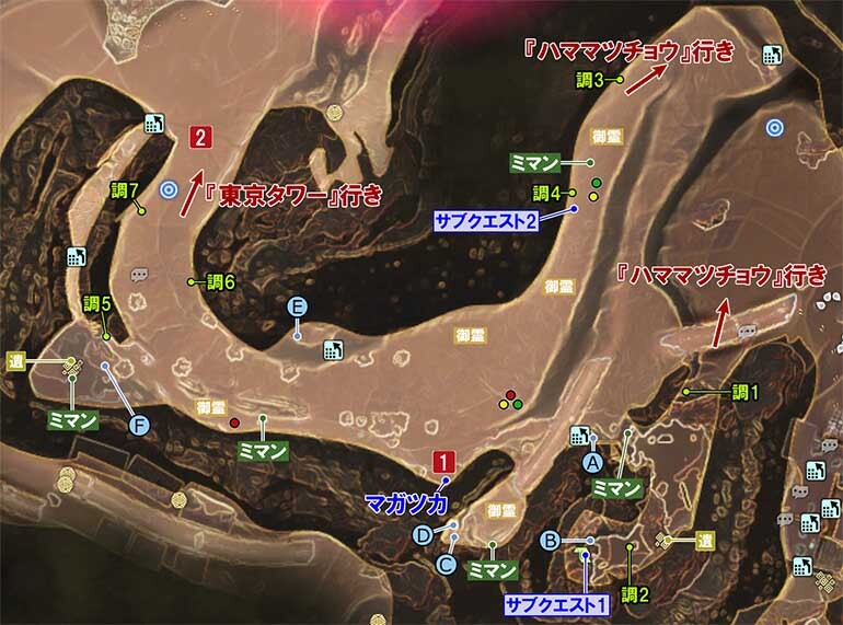 시바 공원의 비탈을 진행한 상층 에리어에 마가츠카가 있으므로, 파괴해 맵을 보이도록 해 둔다.