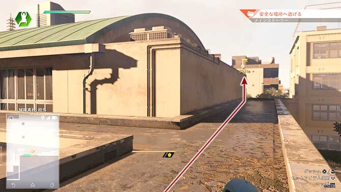 왼쪽 스틱으로 이동할 수 있으므로, 잡거 빌딩의 왼쪽으로 돌아갑니다.