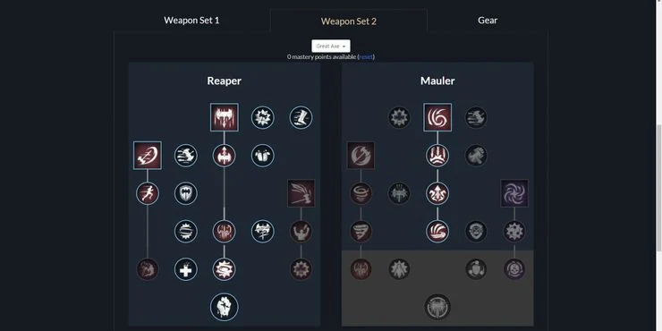 우리는 이 빌드 에서 주로 Reaper 트리 에 초점을 맞출 것 입니다. 뛰어난 데미지 출력, 체력 유지, 능력치 모두 환상적입니다. 그러나 Maelstorm 은 대상을 그룹화하는 또 다른 수단을 제공하기 때문에 Mauler 트리에서 가져 옵니다 .