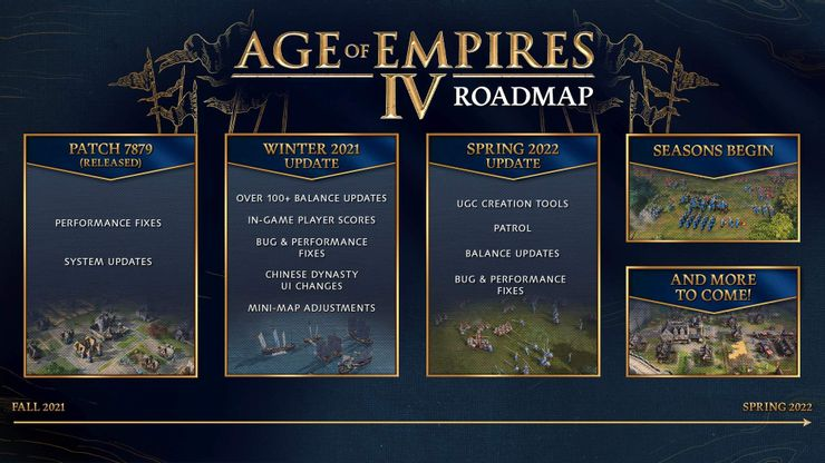그리고 2022년 봄 이후에 AoE 4는 전역 빌드 대기열을 구현하고, 유닛 통계 카드, 핫키 개선, AI 난이도 조정, 웨이포인트 표시기, 도발 및 가장 중요한 치트 코드에 대한 개선 사항을 추가하려고 합니다.