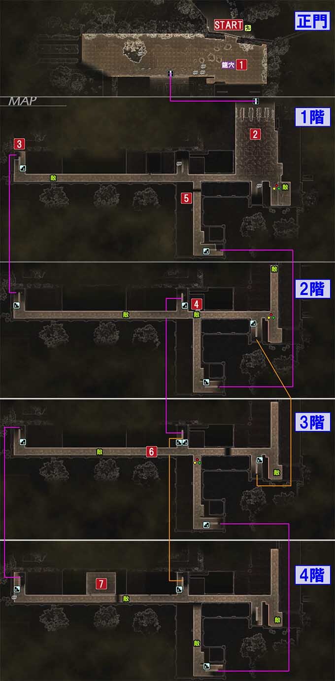 - 7:4층에 있는 교실로 가기「조인대학 의과학연구소~학생 기숙사」의 공략 차트「조인 학원 고등과」의 공략 차트『정증사』의 공략 차트악마 습격 후의 「조인 학원 고등과」의 공략 차트