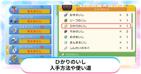 『포켓몬스터 브릴리언트 다이아몬드 샤이닝 펄(포켓몬 BDSP/다이파리 메이크)』의 진화 아이템의 하나, 히카리노시의 입수 방법이나 사용법을 정리해 갑니다.