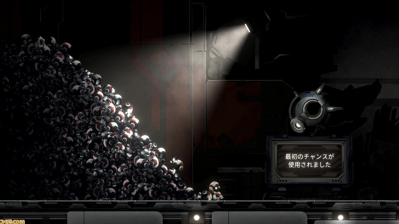 로봇에서 벗어나기 위해 진행된 앞에는 폐기된 대량의 모노봇의 모습이! 자신을 습격해 오는 로봇의 적과 폐기된 대량의 모노봇. 최초로 표시된 62678번이라고 하는 번호로부터, 싫은 예감을 한결같이 느끼게 한다.