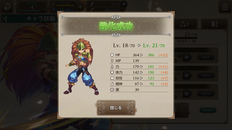 전통적이지만, 이 레벨 올리는 요소가 제일의 끼워넣어 요소이며, 보람을 가지고 도전할 수 있다. 육성에 시간은 걸리지만 캐릭터와 함께 강해지는 감각을 체험할 수 있고, 쓰러뜨릴 수 없었던 몬스터를 쓰러뜨릴 수 있게 되었을 때는 뭐라고 말할 수 없는 기쁨을 느낄 수 있다.