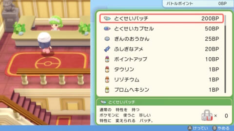 「배틀 파크」로 「BP」로 교환할 수 있는 「토쿠세이 패치」를 사용하는 것으로, 통상 특성의 포켓몬을 꿈 특성의 포켓몬으로 바꿀 수 있습니다. 「토쿠세이 패치」는 꿈 특성을 가지고 있는 포켓몬 모두에게 사용할 수 있고, 전설의 포켓몬에도 꿈 특성이 있으면 사용할 수 있습니다 .