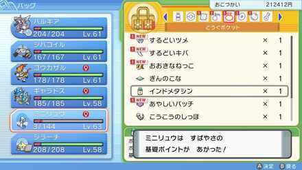 배틀 타워나 대인용 대전 포켓몬의 엄선, 육성은 포켓몬 시리즈 항례의 끼워넣어 요소입니다. 육성 환경이 정돈되는 아이템은 전국 도감 완성 후에 입수할 수 있게 되므로, 우선은 이것을 모으는 곳부터 시작합시다.