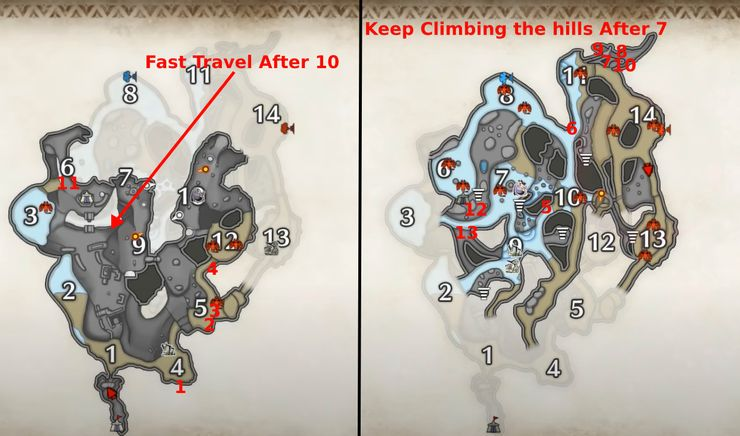 영역 1-4 에서 채굴하는 것은 쉽지만 영역 5에 도달 하면 더 높은 레벨에 도달하기 위해 약간의 플랫폼이 필요합니다. 거기에 도착하면 아래로 점프하면 노드 2-4가 나타납니다. 당신이 직면할 수 있는 다음 문제는 영역 7-10 에서 얻을 수 있습니다 . 7번에서, 당신은 광산을 찾을 수 있는 작은 동굴을 발견할 것입니다. 다음으로 8 , 9 , 그리고 마지막으로 10 까지 등반을 시작하십시오 . 등반할 때 지역 번호를 계속 따라가기만 하면 전체 채굴 작업을 순식간에 완료할 수 있습니다.