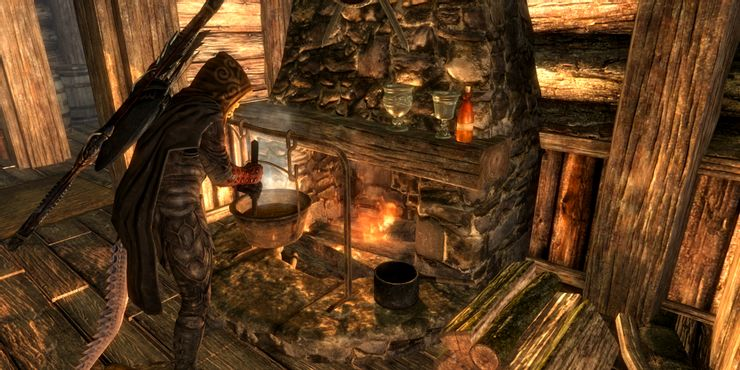 Skyrim에서 요리 냄비를 사용하는 플레이어