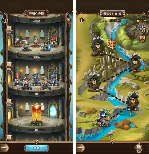 이 외에도 계층 클리어를 해 보상을 손에 넣을 수 있는 타워 배틀 「신역에의 길」 이나 대인전에서의 배틀로 랭크를 겨루는 「아레나」 등이 있다.