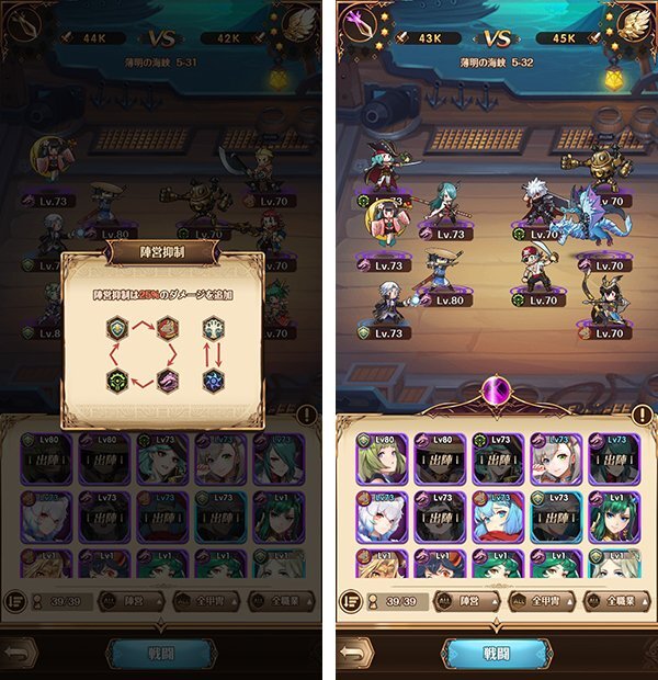 각각에는 궁합이 있기 때문에, 전투마다 적에 맞추어 진영의 조합이나 배치하는 장소를 의식하는 것이, 승부에 이기는 포인트 가 된다.