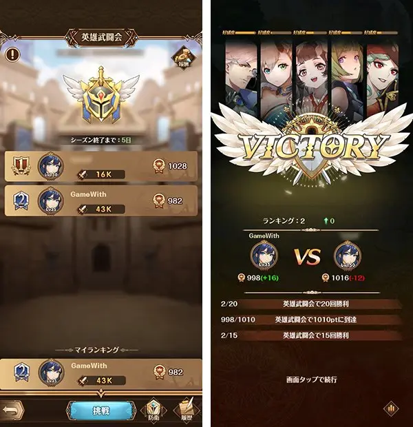▲「아레나」에서는 플레이어끼리의 대인전을 즐길 수 있다. 배틀을 이기면 랭크가 오르고, 상위에 들어가면 특별한 보상을 받을 수 있다. 자랑의 캐릭터들을 부딪쳐 경쟁합시다.