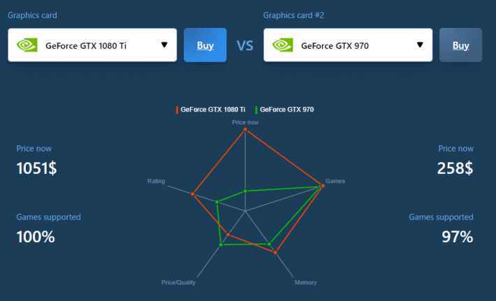 이쪽은 예상 스펙으로 소개한, 「GeForce GTX 970」과 「GeForce GTX 1080Ti」의 비교 화상.