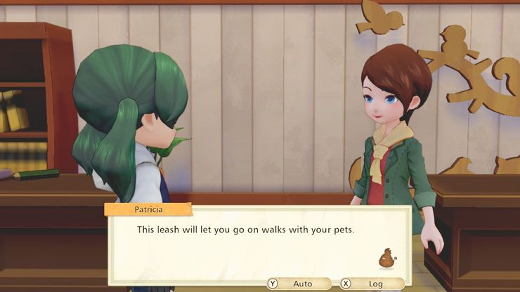 Patricia에게서 가죽 끈을 받는 올리브 타운의 개척자 캐릭터 스토리 오브 시즌스