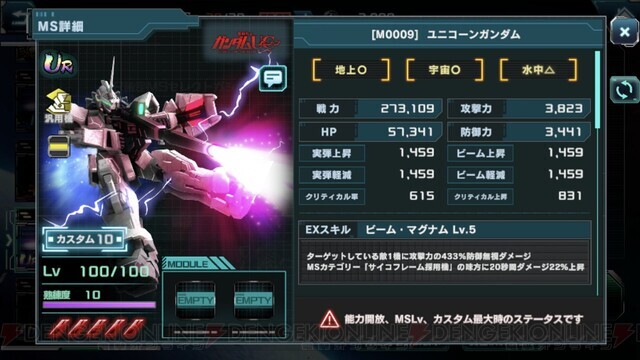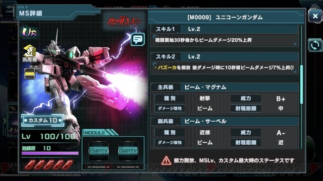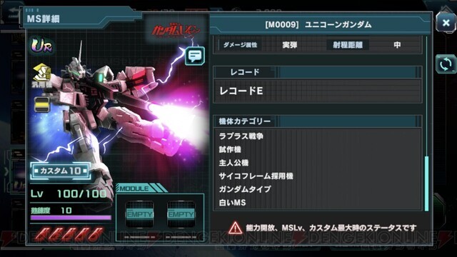 또, MS와 파일럿은 공통적으로, 배틀에 출격하거나 특정의 아이템을 사용하거나 해 경험치를 획득하면 레벨 업이 가능. 게다가 같은 MS나 파일럿을 계속 입수해 나가면 그 MS나 파일럿의 성능을 강화할 수 있습니다.