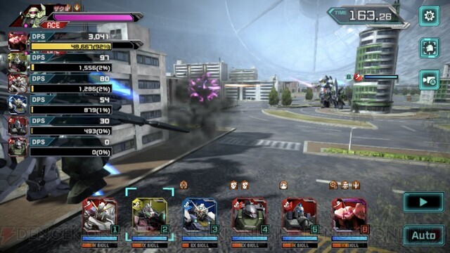 다른 한편의 메인 컨텐츠가 되는 배틀은, 최대 6기까지의 MS로 편성을 짜서 출격하는 것. 최대 6기까지의 편성을 짜고, 자신의 MS5기+다른 플레이어의 MS를 1기 빌리는 것이 기본입니다.