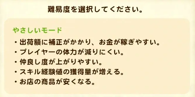 게임을 시작하면 우선 난이도와 캐릭터 설정을 하자. 난이도나 캐릭터의 외형은 나중에라도 변경할 수 있지만, 이름이나 성별, 생일은 나중에 바꿀 수 없기 때문에 주의하자.