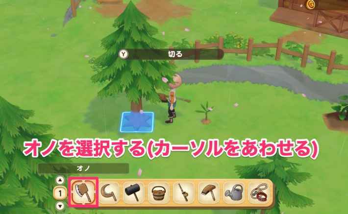 도구 봉투에서 꺼내면, 아이템 바에 있는 사용하고 싶은 도구에 십자 버튼으로 커서를 맞추고, Y 버튼을 누르는 것으로 사용할 수 있다. 오노라면 나무 옆 등 도구를 사용할 수 있는 상황이라면 조작 버튼이 표시되기 때문에 알기 쉽다.