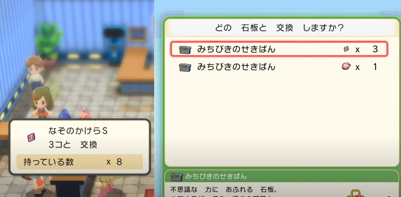 플레이 하고 있는 버젼으로 입수할 수 없는 석판의 포켓몬은, 다른 버젼으로부터 교환 받을 필요가 있습니다.