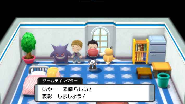 리시 호수 기슭의 수영장이 있는 건물 안에 있는 코닥 옆의 게임 디렉터에게 말을 걸면 표창장을 받을 수 있다. 도감 완성의 표창을 받을 수 있다.