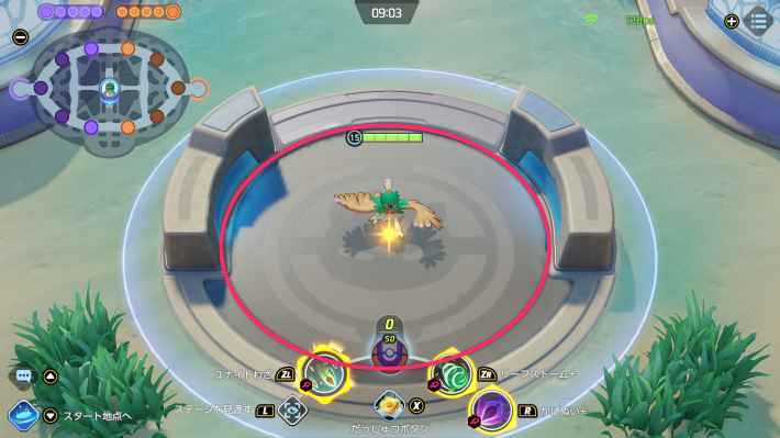 처음에 기억하는 일부러는 「오로카스」보다 주는 데미지가 많은 「이하」가 추천. 중앙 에리어에는 벽을 「딥 슈트 버튼」으로 넘으면 재빠르게 이동할 수 있다 . 아군 중앙 지역의 야생 포켓몬을 모두 KO하여 레벨 5가 되고 후쿠스로로 진화하자.