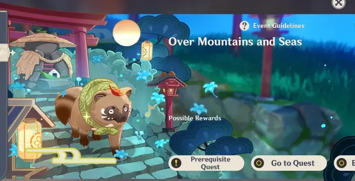 "Over Mountains and Seas"는 v2.4에서 추가되기를 기다리고 있는 또 다른 이벤트입니다. 장난기 많은 너구리 Kichiboushi가 등장하며 거대한 돌 Tanuki 동상 Ioroi의 요청에 따라 그를 데리고 나가 볼 수 있습니다. 세계.