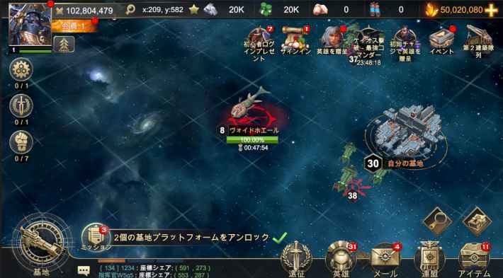 거점의 발전이나 은하의 탐색! 발전시킬까는 플레이어의 판단대로.