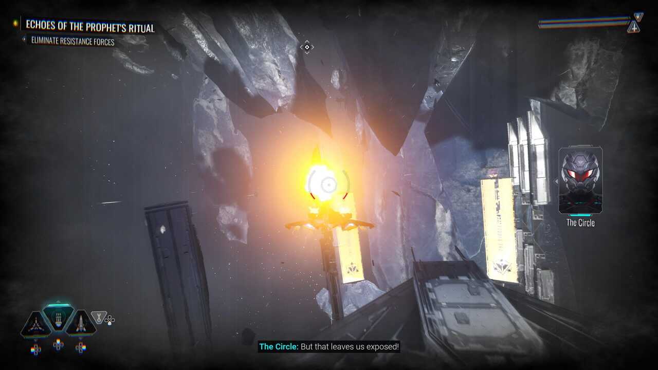 그러나 Chorus 가 다른 우주선 전투 게임과 다른 점은 Nara의 의식에서 비롯됩니다. 이것들은 그녀에게 전투에서 우위를 제공하고 끊임없이 채워지는 미터로 작동하는 초능력입니다. 게임을 시작할 때 당신이 가질 수 있는 유일한 의식은 두 가지 목적을 가진 스캔입니다. 탭하면 근처 수집품과 적을 강조 표시되고 누르고 있으면 지도의 단단한 덩어리를 스캔하고 관심 지점과 사이드 퀘스트를 강조 표시합니다. 그러나 나중에 Chorus 에서 적 뒤로 순간이동, EMP 레이저 발사, 우주선을 고성능 공성기로 바꾸는 등의 멋진 능력을 발견하게 될 것입니다. 게임이 끝날 즈음, 나는 완전히 진짜 나쁜 놈이 된 기분이 들었다.