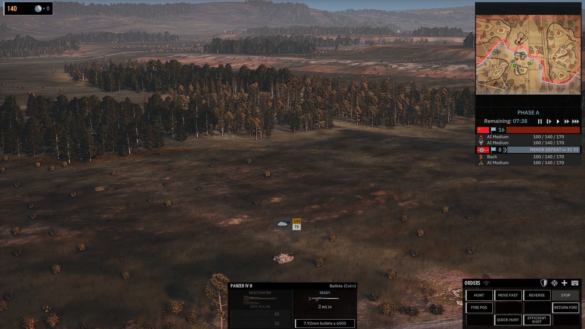 만약 당신과 적군 탱크가 기본적으로 같은 힘이라면, 서로 싸울 수 있지만, 각각의 방어수단이 중요하기 때문에 한두 발을 쏠 수도 있지만, 당신은 보통 당신의 탱크를 2개 또는 3개로 묶을 수 있다. 그리고 당신은 보통 열린 장소에서 HUNT를 움직여서 당신이 행한 적군 탱크를 하나 꺼낼 수 있다.당신들 중 한 명을 없애기 전에 말이야
