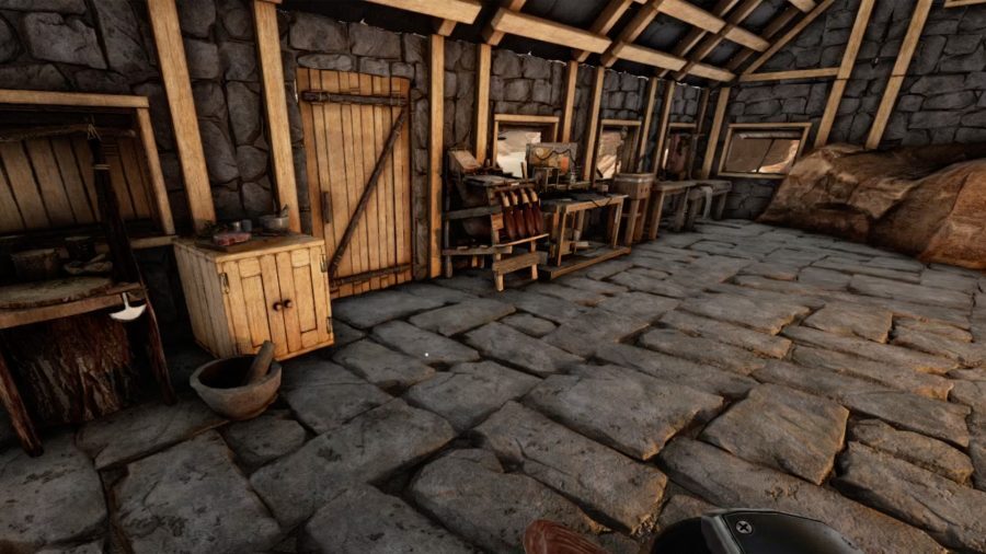 석재를 사용하여 기지를 만들려면 플레이어는 먼저 레벨 15에서 사용할 수 있는 석조 작업대의 잠금을 해제 해야 합니다 . 석재 구조물은 나무보다 훨씬 견고하지만 건설 부품에는 철 부품이 필요합니다. 이러한 구성 요소를 제작하려면 먼저 석재 용광로와 모루를 만들어야 하며, 여기에는 철괴 20개가 필요합니다.