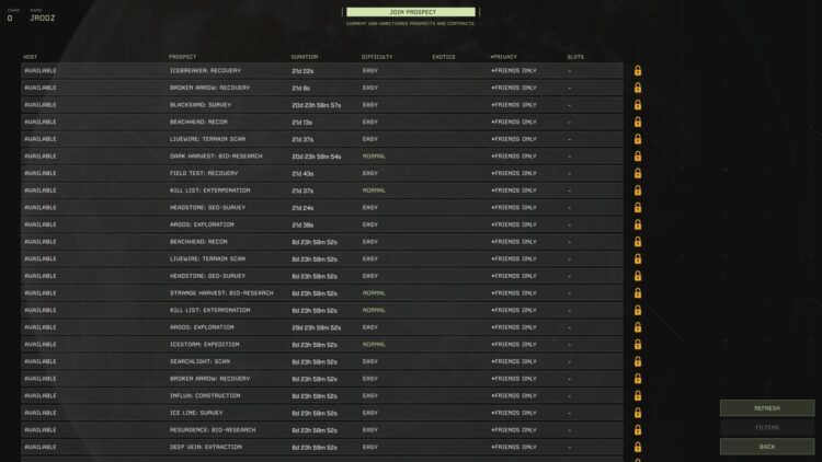 - 오프라인 – 이 패널에는 여러 세션이 있지만 시작할 수 있는 별도의 임무일 뿐입니다. 기술적으로 더 고급/어려운 임무를 수행할 수 있지만 New Prospect 메뉴에서는 정상적으로 잠금 해제되지 않습니다.