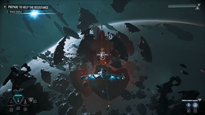 구속은 먼저 실수가 필요하며 우리가 주인공 나라가 만든 것에 대해 배우는 동안 게임은 과장된 설명을 통해 이 배경 스토리를 제공하는 죄를 범합니다. 별로 흥미롭지 않은 내용입니다. Nara는 The Circle이라고 불리는 성간 컬트에서 최고의 전사 중 한 명으로, 모두 "코러스"라고 불리는 것을 믿는 무서운 외모의 Great Prophet으로 알려진 남자가 이끕니다. 기본적으로, 그들은 고전적인 비디오 게임 장소인 "공허"에 접근했습니다. 여기에서 "모든 생물에 대한 집단 의식"이라고 설명되어 있습니다. 그것이 우주 마법의 근원이며, 당신이 정말로 알아야 할 전부입니다. 즉, 나라는 치명적인 조종사이자 우주 마녀이기도 합니다. 누가 ' 그것을 위해 컬트에 가입하시겠습니까? 그러나 이 기원은 어색한 컷신에서 건조하게 전달되는 것보다 움직이는 이야기를 통해 훨씬 더 잘 학습될 것입니다.